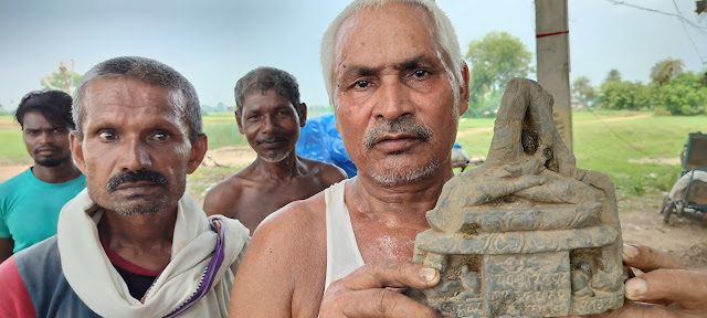 The ‘prosperous village’ mentioned by Xuanzang was on the banks of Gaṅgā. Similarly, Kimbilā of the Pali sources was also situated by the Gaṅgā. If Rajaonā-Valgūdar (i.e. ancient Kṛimilā) represents the site of ancient Kimbilā and the prosperous village of Xuanzang it should be by the Gaṅgā. However, the main channel of the Gaṅgā presently flows 10 km north of Rajaonā-Valgūdar. As per Jageswar Ji, the Gaṅgā in ancient times flowed past Rajaonā (refer to Fig. 1) I met two young farmers, Shikhar Singh and Shivam who were busy irrigating paddy fields using jet pumps. According to Shikhar and Shivam, wellbore excavation in this stretch of land on the northeast of the village (Rajaonā-Chouki) reveals a thick bed of characteristic white sand of the Gaṅgā at a depth of around 12 ft. Presence of a thick layer of Gaṅgā sand below the surface is also reported in the brick kilns east of Valgūdar. This is a shred of conclusive evidence that the Gaṅgā in the past flowed past Rajaonā-Valgūdar. From the farmlands northeast of the mound, I could see that the mound appeared as if the ancient town/village was ensconced on the concave bank of the river (Gaṅgā). This is also evident from the steep and undulating shape of the northern face of the mound. The satellite imagery confirms that Rajaonā-Chouki-Valgūdar is situated on an ancient channel of the Gaṅgā. Almost every monsoon the Gaṅgā swells up to the edges of Rajaonā.