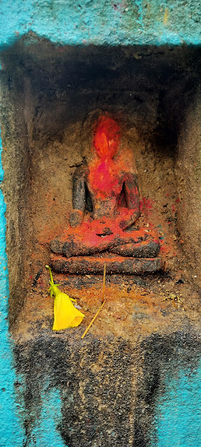 I visited Nōṇgaḍh on a rainy afternoon on August 6, 2024. The ‘stūpa’ site or Nōṇgaḍh identified by Cunningham is situated 300 mts northeast of the village (habitation) on the western bank of Kiul River. The place is now known as Mā Bhagwati Sthān. The house of sādhu noted by Bloch probably evolved into the Mā Bhagwati Sthān shrine. The ‘stūpa mound' is not more than 30 ft high, much more depleted than what was recorded by Cunningham. Nōṇgaḍh village is popular among art historians for the presence of numerous images of yakṣa/dvārapāla and yakṣinī (mother goddess) from the Kuṣāṇa to mediaeval periods (Chattopadhyay, Bandyopadhyay 2017). However, there is some confusion regarding the findspot of these images of yakṣinī.